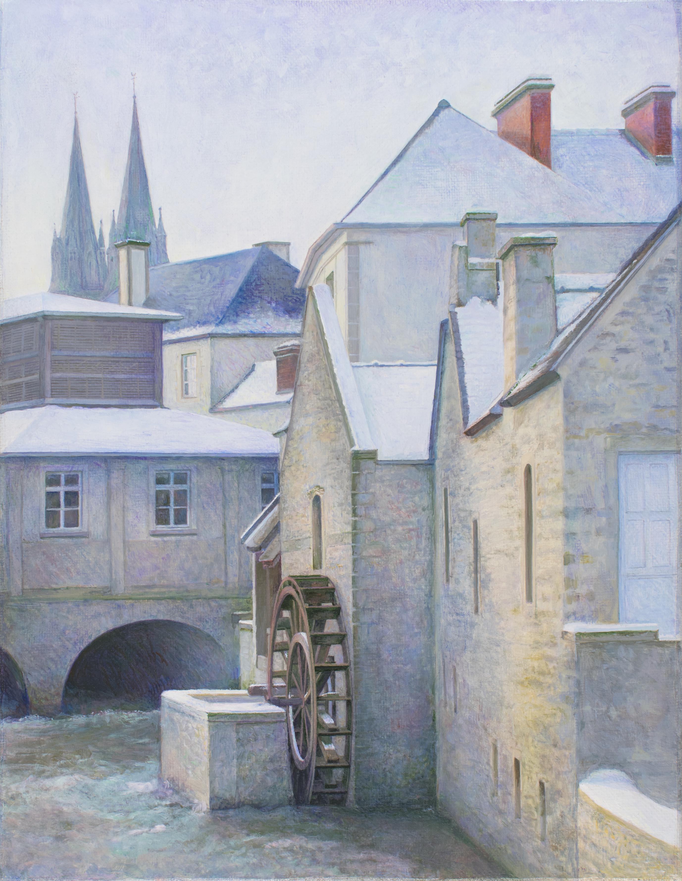 « Perspective de toits enneigés », Bayeux – huile sur toile – 27 cm x 35 cm