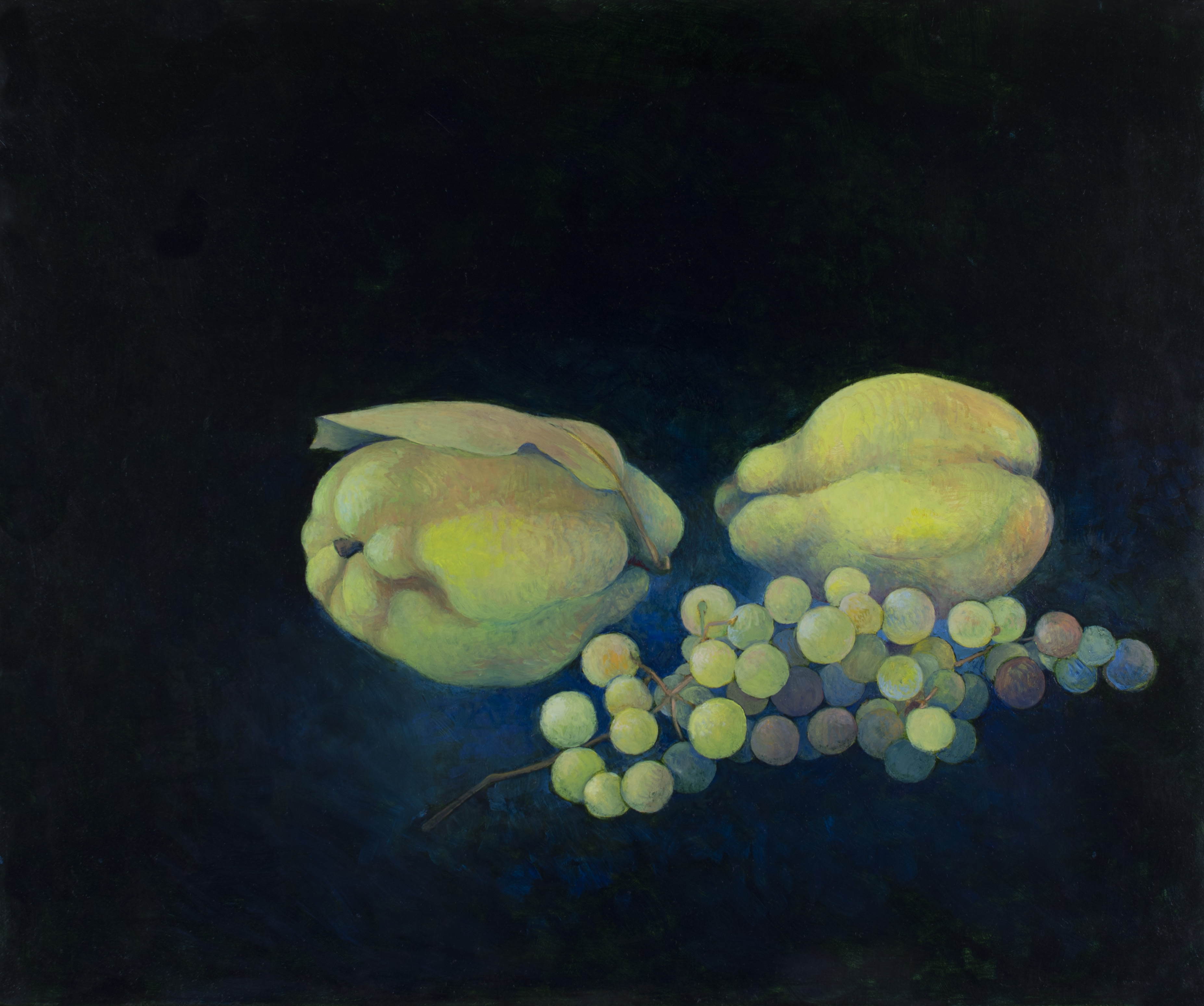 « Deux coings et du raisin » – huile sur bois – 35 cm x 29 cm