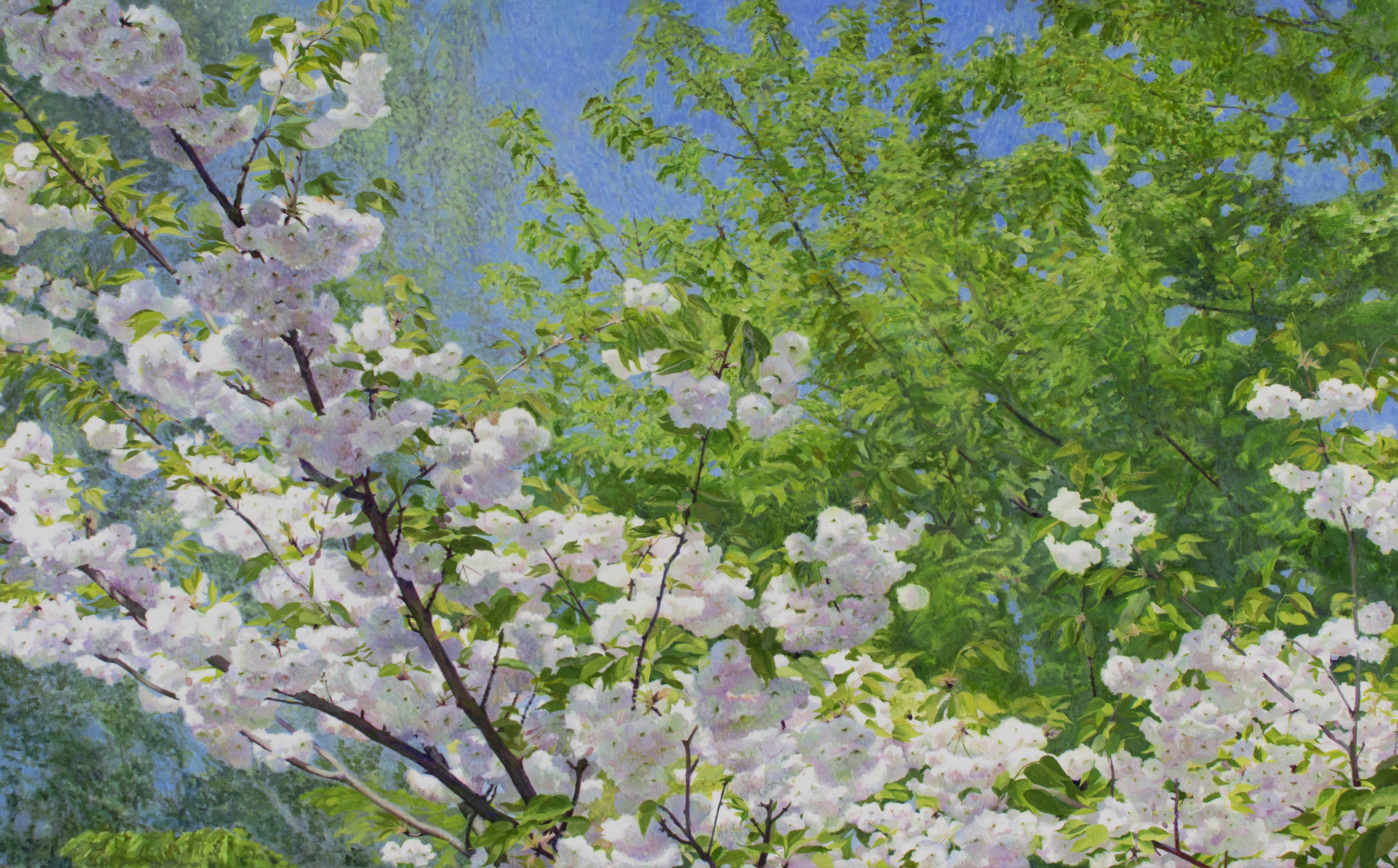 « Prunus, branches dans le ciel », Paris – huile sur toile – 50 cm x 50 cm