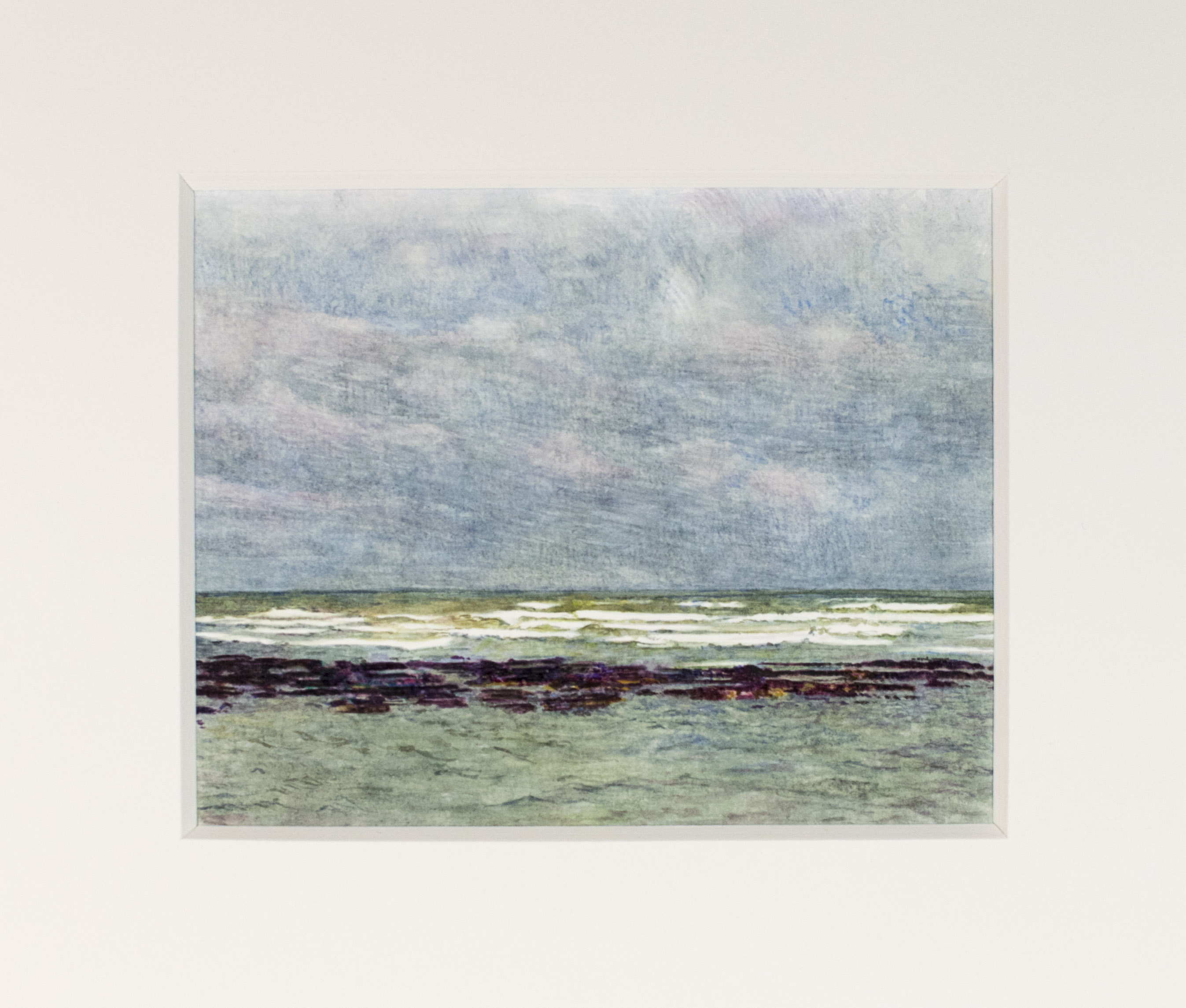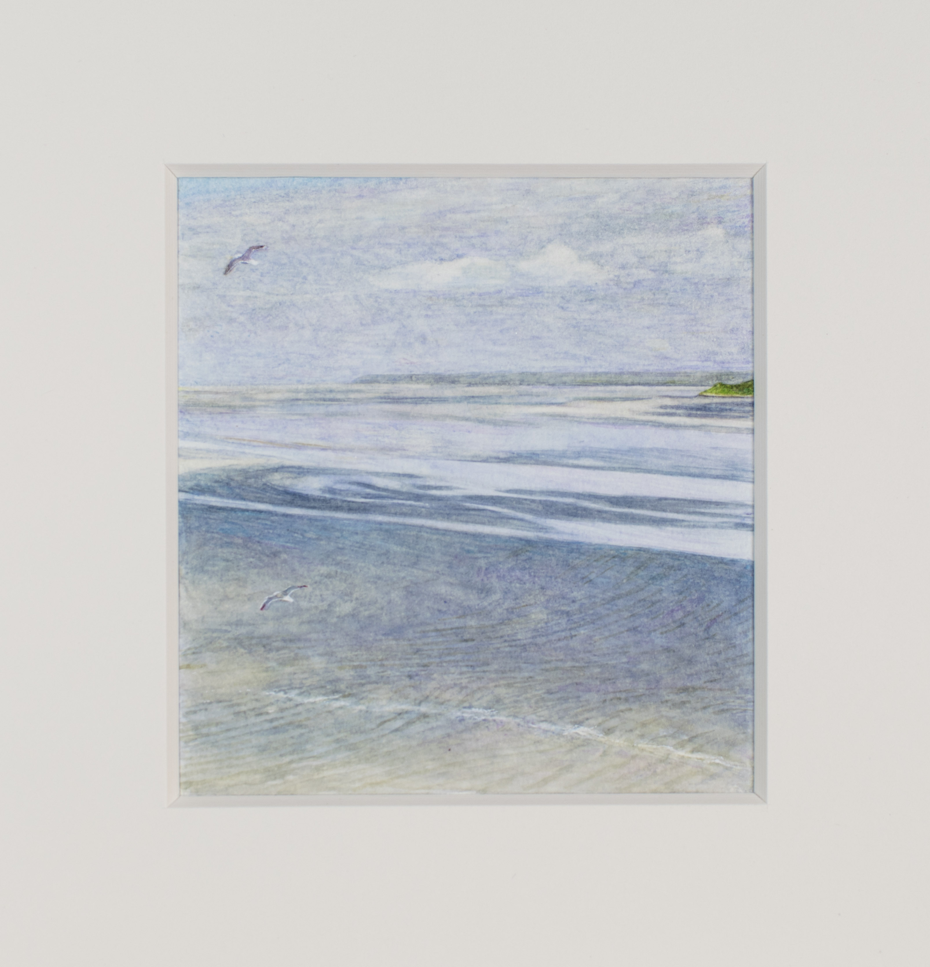 « Grève et vagues, marée basse », Port-en-Bessin – aquarelle – 9,5 cm x 10,5 cm