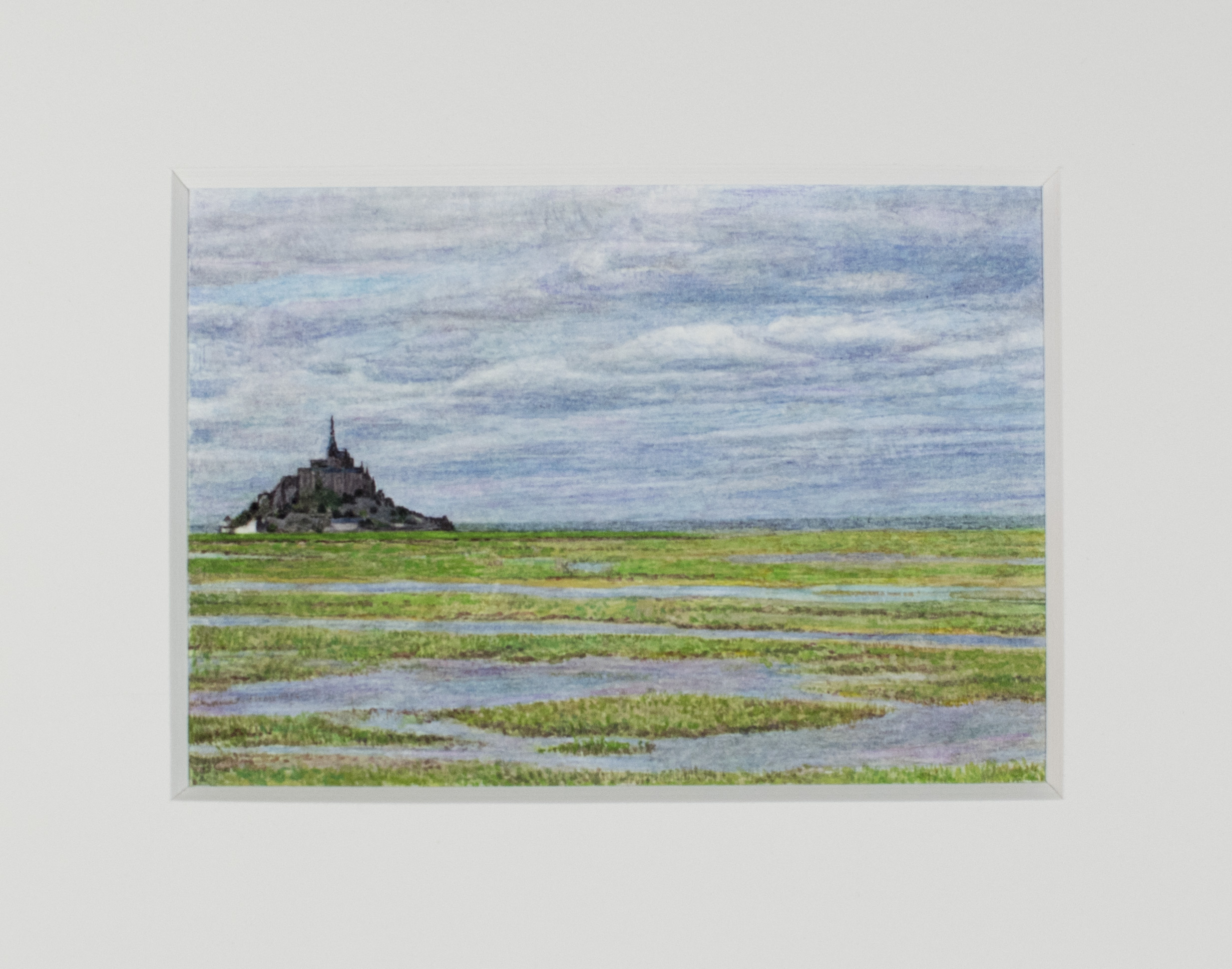 « Entre nuages et prés salés », Mont-Saint-Michel – aquarelle – 13,5 cm x 9,5 cm
