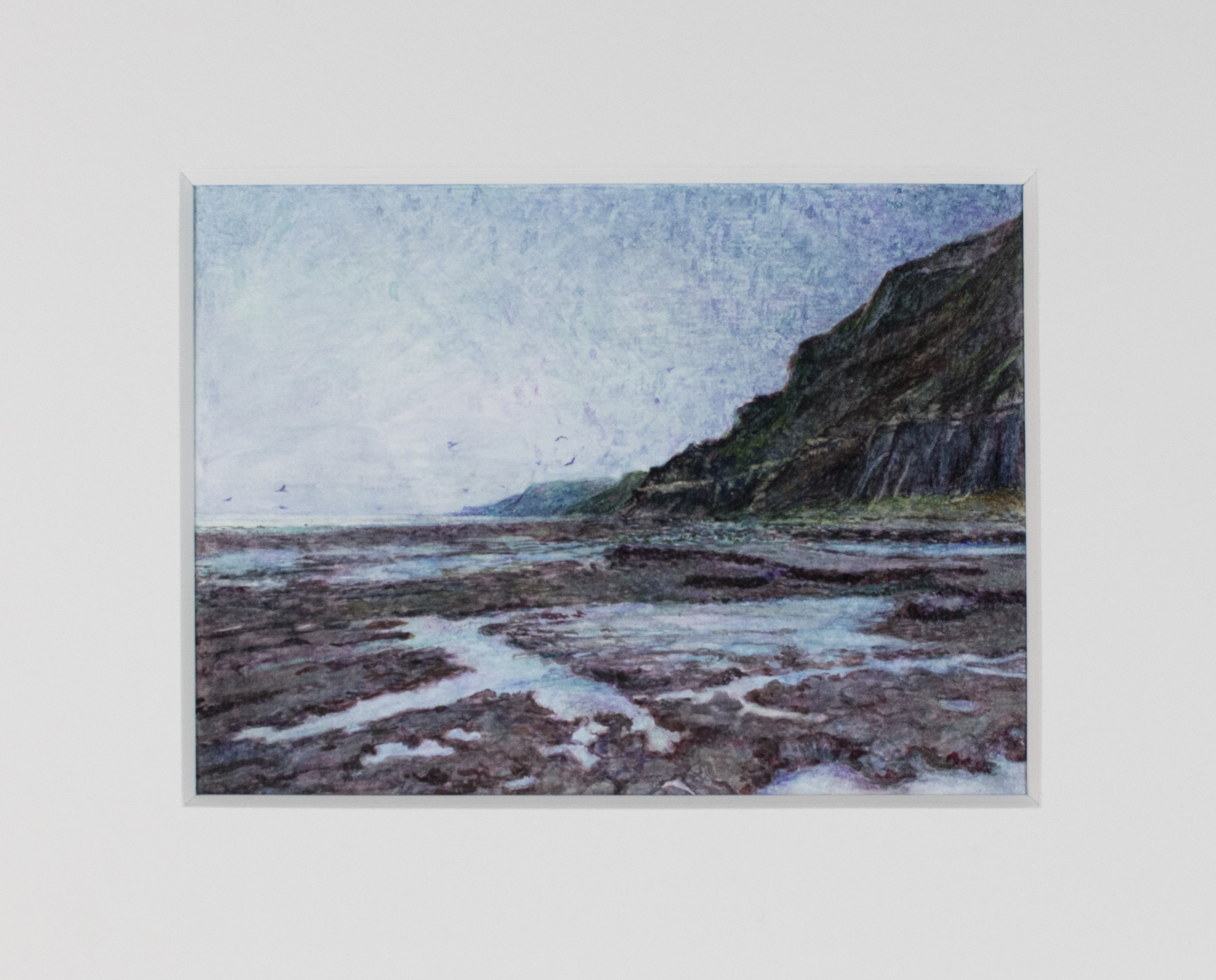 « Grève et falaises, marée basse », Port-en-Bessin – aquarelle – 14,5 cm x 11 cm