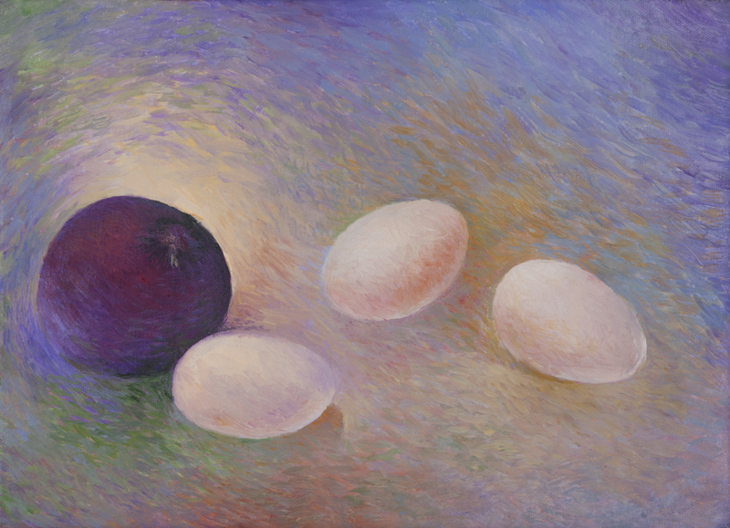 Je ne me lasse pas de regarder les marines, les natures vivantes, oeuvres originales d’Amélie, que j’ai chez moi. Avec l’ananas je m’envole, avec les marines, pourtant de petits formats, je plonge dans l’immensité de la mer, avec les oeufs je plane…..les couleurs sont magnifiques, la technique est là. h vdw